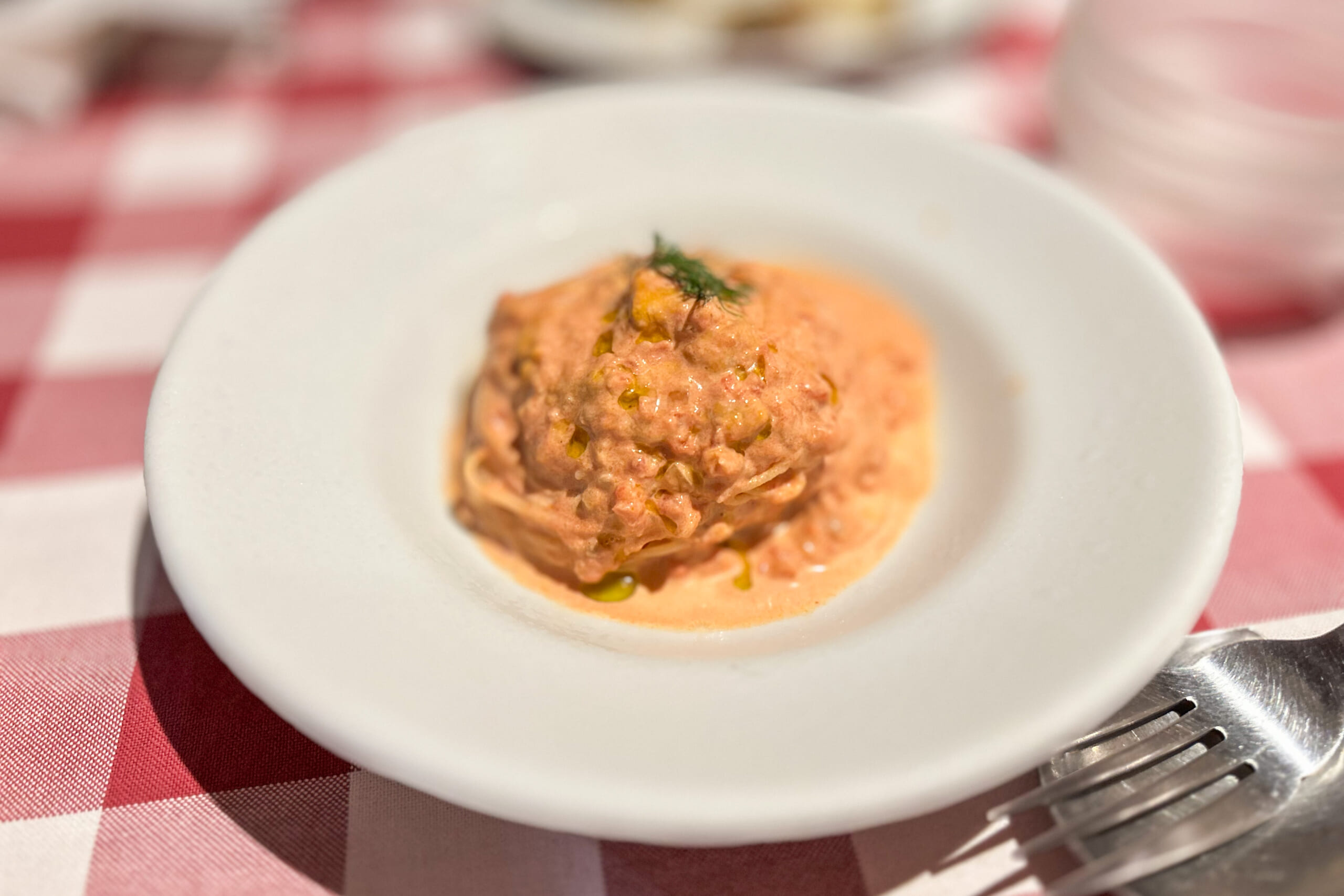 可愛い店だった。店の前にはオリーブの鉢植えがあり、ファサードの大半を窓が占めていた。通りから覗くと赤白のギンガムチェックのクロスがかけられたテーブルが並んでいた。予約なしだったが平日だったこともあり運よく入れ、窓際の席があてがわれた。