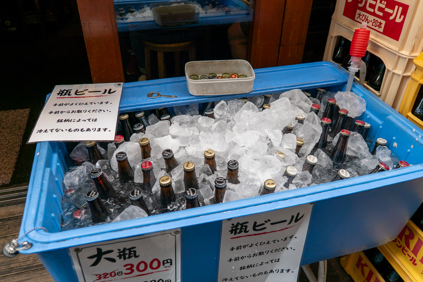 店の前であれやこれやと思っていたら中から客が出てきた。タバコを吸いに出てきたものだとばかり思っていたが、入り口の横に置かれたクーラーボックスの中からビールを選んで栓を抜き店内に戻っていった。