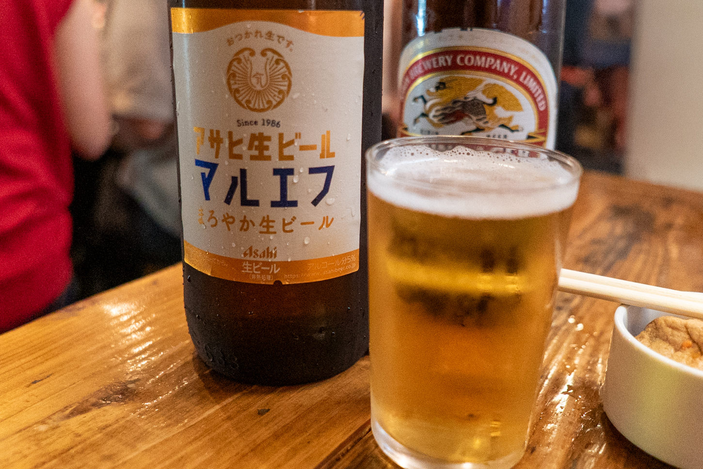 クーラーボックスにはそんな説明書きが。どうやら瓶ビールはセルフのようだ。しかも300円(税別)と。冷やされているのは633ml、大瓶だ! 大瓶が300円。まさにサンクチュアリにふさわしい、いや夢の値段と言っていい。何本飲もうが制限なした。ただし正午のオープンから17時までの間だが昼飲みには十分過ぎるだろう。我々はマルエフとキリンラガーを抜いて持ち込んだ。