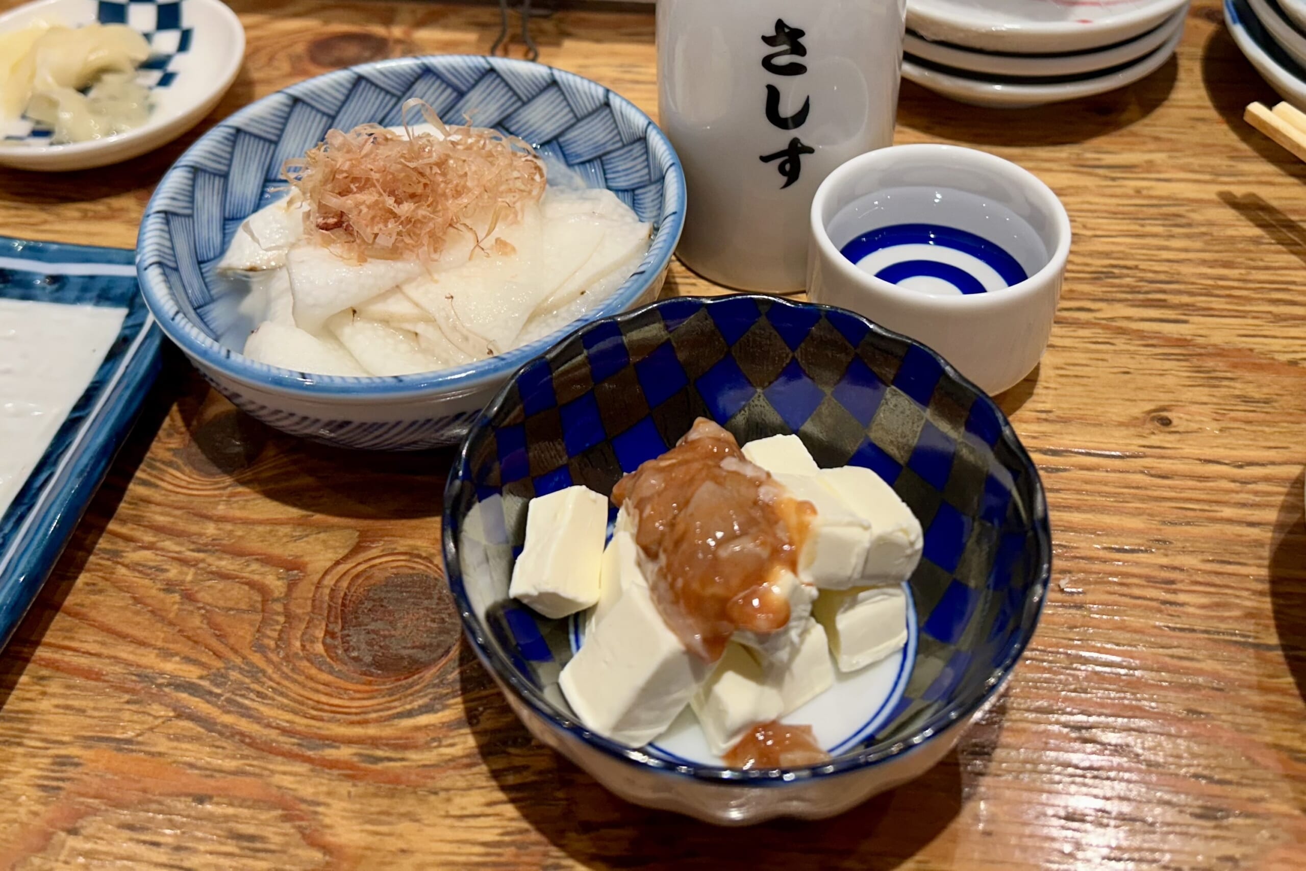 「日本酒あり、焼酎あり、ワインあり、日本酒にこだわる」「魚料理にこだわる」がすし酒場さしすのうたい文句だ。これは楽しく飲める店を見つけた。次は1軒目に覗きたい。