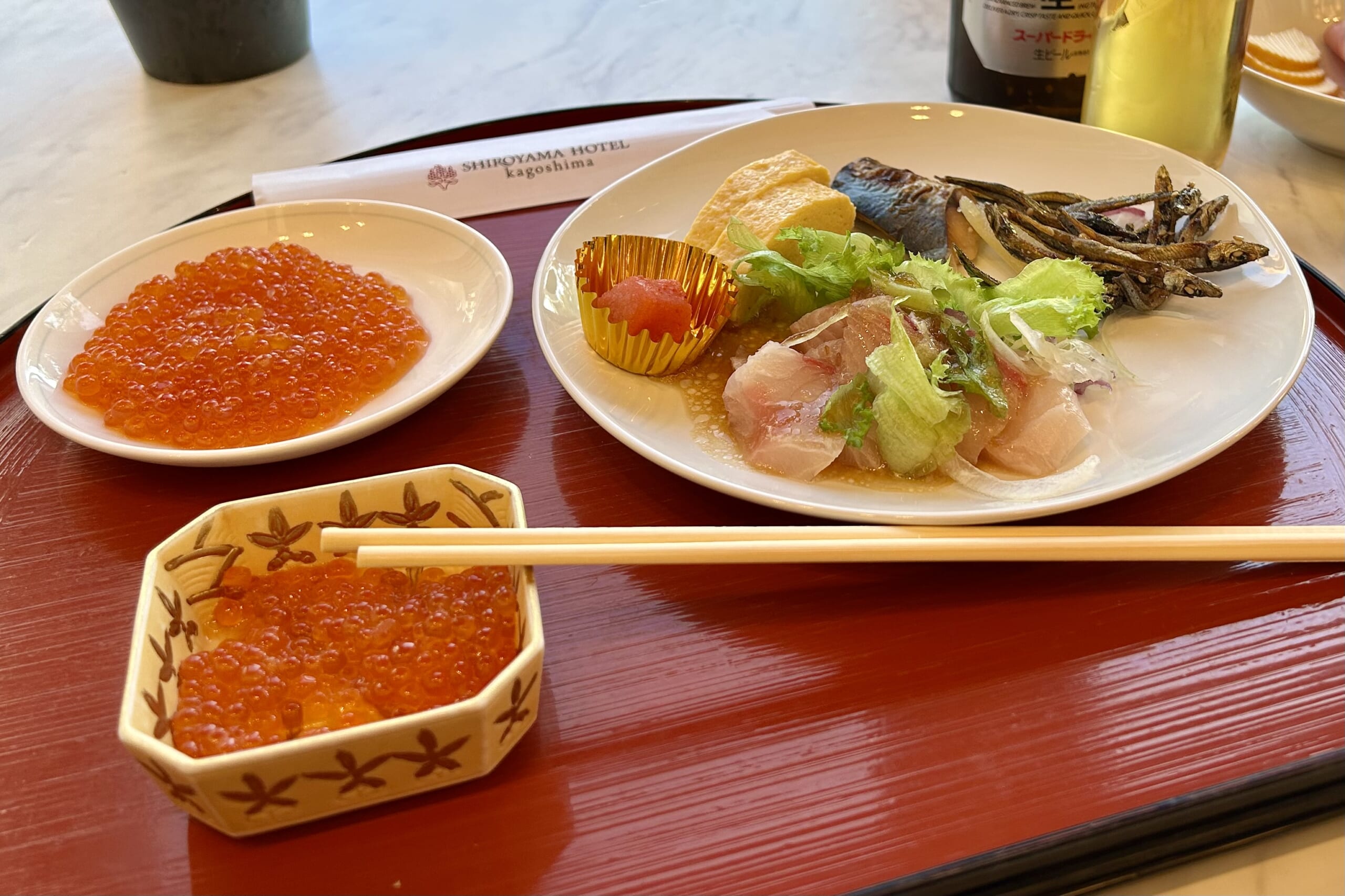 せっかくなので、そのままホテルの朝食で新年を祝うことに。このホテルの朝食はバイキングで、豪華さと味の良さで評判です。お値段は5,500円と少々高めですが……まあ、お正月ですし。